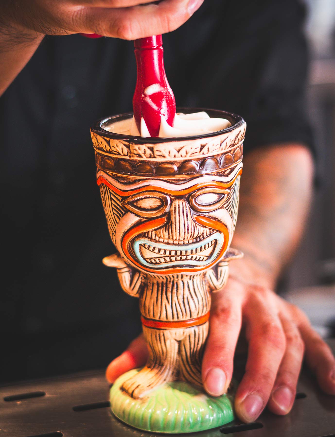 Succo d’Ananas, Succo di Lime, Polpa di Maracuja, Sciroppo di Fragola, Ginger Beer