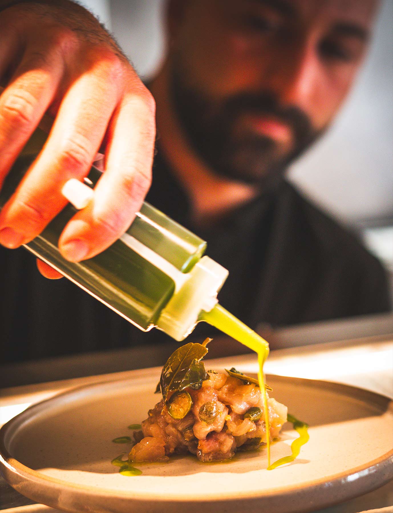 Gobbetti marinati*, emulsione di colatura di alici, erbe aromatiche e limone